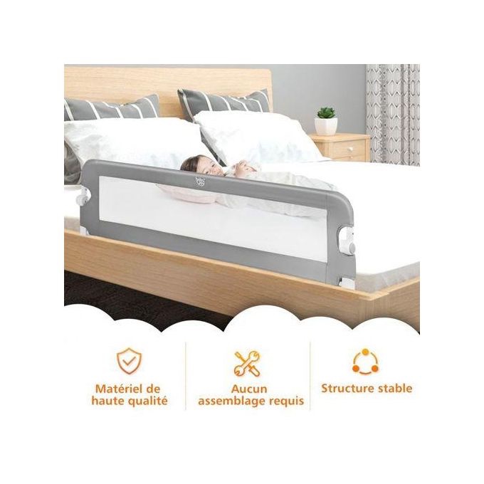 Robuste et confortable, elle élémine totalement le risque que votre enfant tombe du lit, son installation est facile et ne demande pas d’outils.
